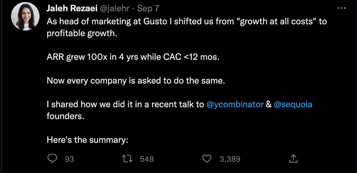 Another great tweet thread from the Founder/CEO at Mutiny on how she switched from “growth at all costs” to profitable growth: